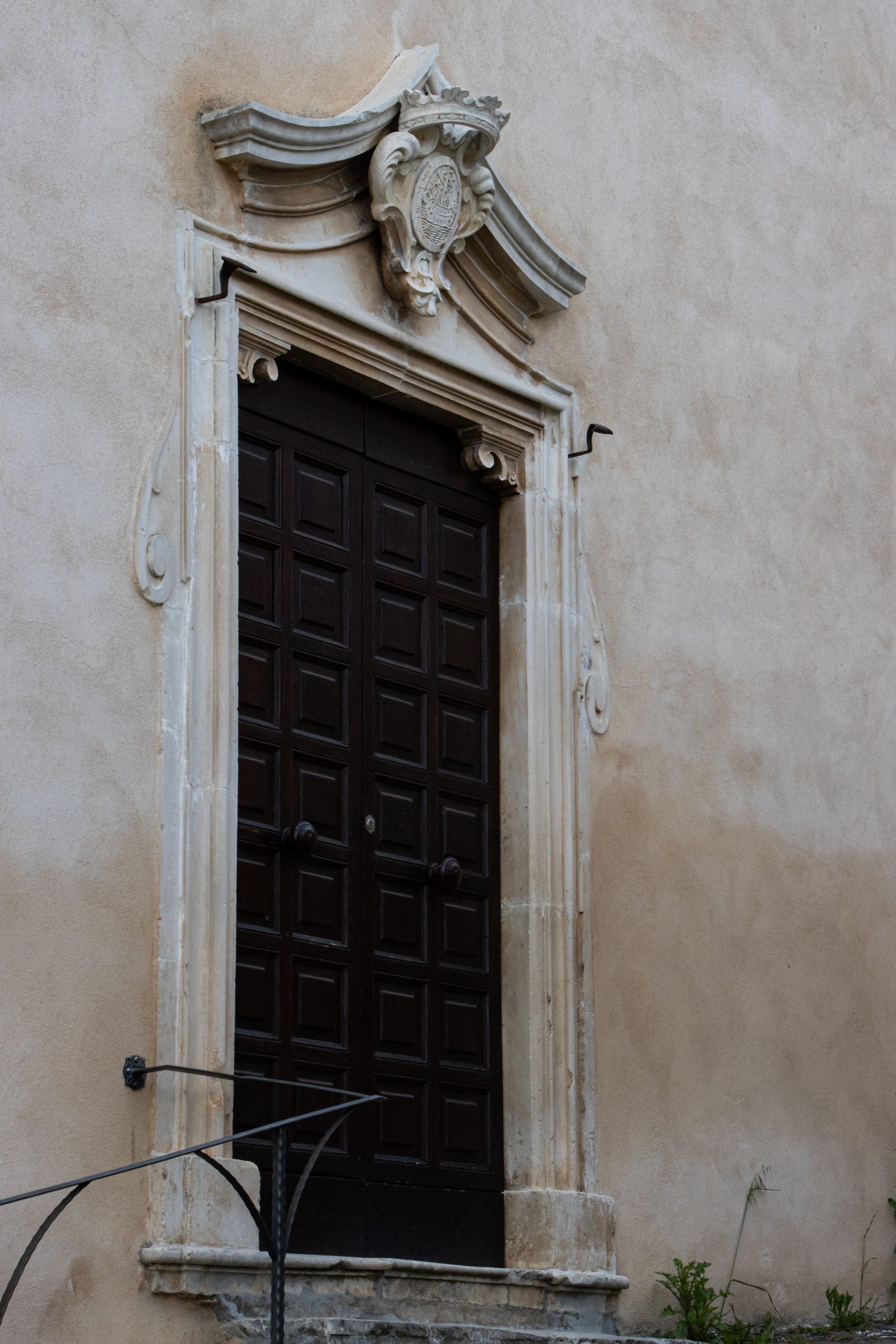 Sorge sul luogo ove si trovava la Chiesa di San Pelino, dove alla fine del ‘500 si insediò una comunità di frati domenicani, abolita da Papa Innocenzo X nel 1652: da allora la chiesa entrò in uno stato di abbandono, aggravato dalla peste del 1658 e dal terremoto del 1703. Della chiesa non rimane nulla, se non i toponimi san pulìnë, Piazza e Porta San Pelino. Fu cura dell’Arciprete Francesconi il rinnovarla dedicandola al SS. Rosario, con lavori che iniziarono nel 1726, ultimati nell’arco di un cinquantennio: da qui il suo aspetto barocco.