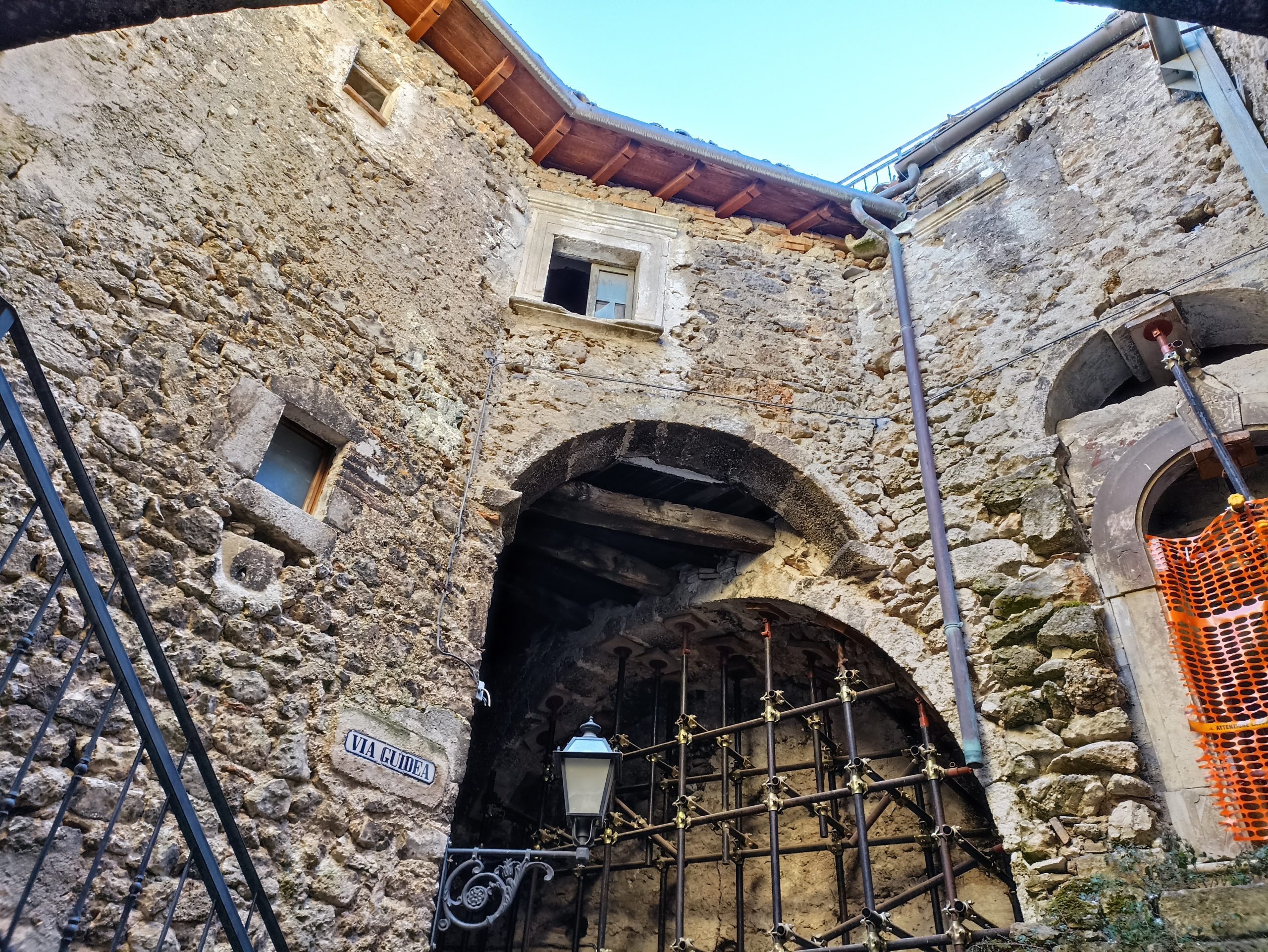 Ecco che via e piazza Giudea diventano via e piazza Guidea, mentre ancora oggi possiamo scorgere il portale in pietra di palazzo Perelli che si sovrappone ad un più antico arco, così come semplici piccole porte con architrave in pietra montato su un vecchio architrave, e più che altrove imperare il Cristogramma IHS – Iesus Hominum Salvator tanto amato proprio da San Bernardino, a sottolineare come quelle fossero da quel momento case di cristiani e non più di ebrei. Il ghetto è rimasto nel corso degli anni, ed in particolare a partire dal secondo dopoguerra, progressivamente disabitato, quasi totalmente diroccato, finché non si è cercato di mettere un freno a questo stato di abbandono con un ambizioso progetto di recupero avviato dal Comune di Navelli.